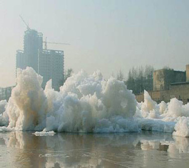 (圖為泡沫對環境產生嚴重的危害)